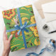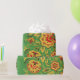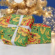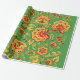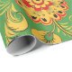 Russian Hohloma wrapping paper, Russian art, red strawberries, yellow leaves, black background