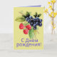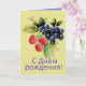 A Happy Birthday card with colourful berries. Card says "С Днём рождения! " in Russian language to wish a happy birthday. Inside of card is in English. It wishes happy birthday and also says "May your life blossom and be filled with all good things!" открытка на день рождения. персонализированная открытка