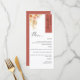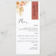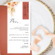 Why spend in place cards and menu cards when you can have an elegant All-in-one elegant Menu personalised with each guest name! Contemporary, simple and elegant design with exquisite watercolor floral detail in a beautiful blend of peach, orange, blush, dusty coral, cream and champagne hues. Modern hand written calligraphy elements. Stripe on the top right corner in rust red-orange tone with guest name in black. Back in same rust as stripe. Ability to change both stripe colour or back by selecting "customise further". NOTE: please an individual order for each menu by adding guest name into menu, add menu into shopping cart; then come back to menu, add second guest name, add menu to shopping cart...continue with this process with all guest names on your list. Zazzle does not receive guest names lists to print. For short first guest names add with your keyboard spacebar a few empty "spaces" before name to centre. Design available in a variety of colour choices. Part of our "Peach Floral Delight and Rust Orange" collection with a variety of coordinating products available. Visit the entire collection at: https://www.zazzle.com/collections/peach_floral_delight_and_rust_orange-119930026374948611