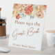 Rust Beige Peach Floral Bridal Shower Guest Book Pedestal Sign