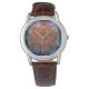 I was uncertain about the size being too small but it looks good. The case looks like aluminum (not shiny) and the time is easy to see. I changed the band because the leather doesn't go with my lifestyle.a. Exactly what I expected, nice yellow. It grabs peoples attention.