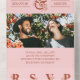 Floral all in one wedding invitation with your photo and a beautiful flower-adorned ampersand in rust against light pink.