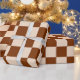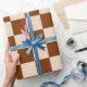 A seamless brown and beige checkerboard pattern with uniformly sized squares, creating a classic, symmetrical appearance. The design is simple and balanced.