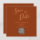 This elegant Rust Burnt Orange Save The Date QR Code Invitation is the perfect choice for couples seeking a minimalist and modern design for their upcoming wedding. With its simple yet elegant script typography, this invitation will impress your guests with its understated beauty. The use of rust burnt orange colour scheme provides a touch of warmth to the invitation, evoking the feeling of the fall season. The QR code feature adds a unique and convenient element to the invitation, allowing guests to easily access important wedding information through their smartphones. The design is kept minimal yet stylish, making it suitable for any wedding theme.