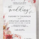 Rustic floral wedding invitation featuring hand painted watercolor flowers in burgundy, rust red, burnt orange and terracotta with greenery and modern calligraphy script. Beautiful romantic watercolor flowers all in one wedding invitation.