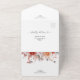 This elegant summer and fall colours floral wedding all in one invitation is designed with an easy to tear off perforated RSVP postcard. Simply fold the card, seal and send (no envelope needed).