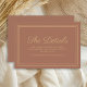 Elegant rust/burnt orange wedding details card that gives wedding website details and allows your guests to RSVP through your site. Text is completely customisable, so this card can be used for any special instructions or information you would like to share with your guests.