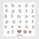 Rustic rust colour lower case font typography letters alphabet sticker pack for monogramming, personalising, customising, note writing, journals, notebooks, and more. This set also includes an exclamation point, heart, flower, and star.