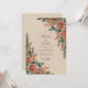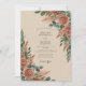 Warm terracotta roses and delicate sienna blooms create an earthy aesthetic for this design. Silvery eucalyptus foliage and feathery pampas grass add texture against a neutral tan background. This painterly botanical artwork evokes a romantic, bohemian atmosphere perfect for an autumnal outdoor ceremony.