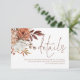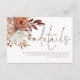 Rust Terracotta Florals Brown Script QR Code Wedding Details enclosure making it convenient for your guests to reply by scanning your QR code leading to your wedding website reply page. Details is in a stylish set script and easily personalise the rest of the words to your own and replace the sample QR code on the back with yours simply by changing the sample url to that of your own website.
