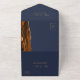 Rust Gold Agate Navy Blue Modern Script Wedding All In One Invitation