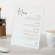 Display your wedding or event menu selections in modern style with this simple and elegant pedestal sign featuring earth tone terracotta rust lettering on a crisp white background. "Menu" or your custom header appears at the top in modern handwritten script lettering. Personalise with your menu items beneath, aligned at the right.