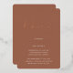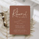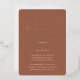 Invite guests to celebrate the happy couple with these modern and minimal rehearsal dinner invitations with luxe foil accents. Simple design features "rehearsal dinner" in casual rose gold foil handwritten script, with your event details beneath on an earth tone terracotta rust background.