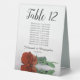 These tent table number signs are not only beautiful, they even include a list of names for the guests at each table, making it easy for your guests to find their seat at your wedding reception. The design is both elegant and romantic featuring a single rust orange or burnt umber coloured rose lying on its side reflecting in water with waves and ripples. The title is in lacy script calligraphy with bold numbers so your guests can easily find the right table. There is room for the names of the couple and the wedding date.
