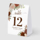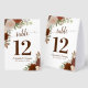 These rustic and beautiful table tent signs will make it easy for your guests to find their seats at your wedding reception. They feature an elegant boho chic design with hand painted watercolor roses in shades of rust orange, burnt umber, and coral peach, as well as eucalyptus leaves and autumn foliage. Perfect for a fall or fall ceremony.