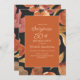 Elegant rust, burnt orange, and terracotta watercolor floral on black 50th Surprise birthday party invitations customised with your name and party information.
