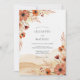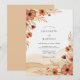 This design features a warm palette of rust and terracotta watercolor washes paired with delicate floral illustrations. Ethereal anemones and earthy dried leaves create a sophisticated boho aesthetic perfect for a fall event. The background showcases a soft ochre landscape texture that adds depth and artistic flair to the composition.