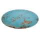 Rusted blue metal canvas, textured history painted by time and weather's embrace.