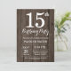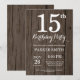 Rustic 15th Birthday Invitation. Rustic Wood Background. Vintage Retro Birthday. Kids Birthday. Boy or Girl Bday Invite. 13th 15th 16th 18th 20th 21st 30th 40th 50th 60th 70th 80th 90th 100th, Any age. For further customisation, please click the "Customise it" button and use our design tool to modify this template.