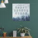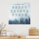This beautiful wedding seating chart has table assignments for 160 guests at 16 tables (10 people per table.) The design is rustic yet elegant with a mountain hillside shrouded in mist or fog and covered with blue spruce or pine trees. There is a lacy script calligraphy title reading "please find your table" as well as space for the names of the couple and the wedding date. Perfect for an outdoor or mountain destination wedding.