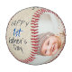 Rustic 1st Father`s Day Script 2 Photo Collage Baseball. Cute design for the new dad. Trendy script Happy Father`s Day, message with name and year is on a beige rustic texture background. Add your 2 favourite photos and make a sweet gift for a new dad for Father`s Day.