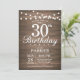 Rustic 30th Birthday Invitation with String Lights Wood Background. 16th 18th 21st 30th 40th 50th 60th 70th 80th 90th 100th, Any age. For further customisation, please click the "Customise it" button and use our design tool to modify this template.