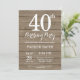Rustic 40th Birthday Invitation. Rustic Wood Background. Vintage Retro Birthday. Adult Birthday. Men or Women Bday Invite. 13th 15th 16th 18th 20th 21st 30th 40th 50th 60th 70th 80th 90th 100th, Any age. For further customisation, please click the "Customise it" button and use our design tool to modify this template.