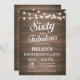 Rustic 60th Birthday Invitation with String Lights Wood Background. Woman Birthday Party. Sixty and Fabulous. Any age. For further customisation, please click the "Customise it" button and use our design tool to modify this template.
