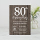 Rustic 80th Birthday Invitation. Rustic Wood Background. Vintage Retro Birthday. Adult Birthday. Men or Women Bday Invite. 13th 15th 16th 18th 20th 21st 30th 40th 50th 60th 70th 80th 90th 100th, Any age. For further customisation, please click the "Customise it" button and use our design tool to modify this template.