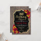 Rustic 80th Birthday Invitation. Elegant design with faux glitter gold and dark brown wood pattern. Features sunflowers and roses. Perfect for an elegant country style or garden birthday party.