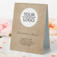 Rustic Add your Logo with Custom Text Company Promotion Table Tenl Sign. Rustic beige background. Insert your logo into the template and customise the text, company name, address and contact information.