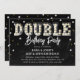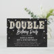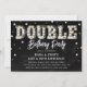 Celebrate in style with this rustic adult double birthday party invitation. Design features a chalkboard blackground, lightbulb number lettering, and confetti. The editable template is easy to customise using the template provided.