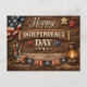 Celebrate Independence Day with timeless country charm in this rustic Americana design. Set against weathered wood planks, classic red, white, and blue accents shine through vintage stars, bunting, and a softly glowing lantern. Textured fabrics, distressed details, and handmade patriotic elements evoke cozy farmhouse décor and old-fashioned Fourth of July celebrations.