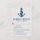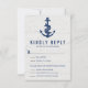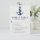 A navy blue anchor on a light grey "wood-like" background. Banner on the anchor reads RSVP. All text can be customised. Options on the RSVP include entree selections. Perfect for a nautical wedding, especially if going for the rustic or vintage look.