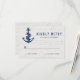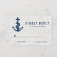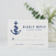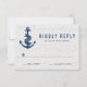 A navy blue anchor on an off-white wood look background. Banner on the anchor reads RSVP. All text can be customised. Perfect for a nautical wedding, especially if going for the rustic or vintage look.