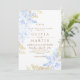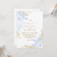 Modern Wedding Invitation white and blue floral roses with gold dust are elegant and classic invite. Design features an handwritten font and modern minimalist design. To change details, click "Personalise".