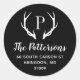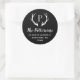 Custom round return address stickers personalised with your family monogram and address. This modern rustic design features your monogram initial with deer antlers in black and white colours. Use the design tools to change the background colour and fonts to further customise your own unique design. Perfect for addressing holiday cards, wedding stationery and more.