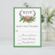 With enchanting rustic boho style, this wedding RSVP Card design features deer horns beautifully embellished with winter evergreens and berries and a red cardinal surrounded by a dark green border. Include your required RSVP response date in place of the sample text shown.