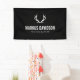 Make a bold statement at trade shows, art and craft fairs, festivals, pop-up shops, boutiques, and event booths with our customisable vinyl banner design featuring a pair of rustic deer antlers elegantly centred above bold text, allowing you to personalise it with your own name or business name. This distinctive design adds a touch of rugged charm and natural allure, making it the perfect choice for businesses looking to make a memorable impression. Let your brand stand out with this unique and customisable banner, embodying a blend of rustic sophistication and individuality. Art and design © 1201AM Design Studio | www.1201am.com