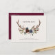 Rustic antlers script navy burgundy floral wedding announcement postcard