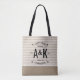 Modern farmhouse tote bag personalised with your family name, monogram initials, city and established date in a trendy logo crest. Please note the subtle linen background texture is part of the printed design and the product is not made of real linen fabric. Click the Customise It button to customise fonts and colours, add your own text and photos to create a unique one of a kind design!