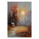 This AI-generated landscape artwork glossy poster print captures the serene beauty of autumn in the countryside. A rustic cabin nestles among towering trees, their leaves a blend of warm oranges, reds, and browns, reflecting the rich tones of fall. The glowing sun casts a soft, golden light over the peaceful setting, creating a tranquil and nostalgic atmosphere. The brushstroke-inspired texture gives this piece an impressionistic feel, perfect for those who appreciate rustic or nature-inspired home decor. This artwork evokes the quiet charm of an autumn morning, ideal for cosy living spaces, cabins, or any room that needs a touch of warmth and nature. The hazy background adds depth to the scene, while the soft lighting highlights the natural beauty of the season. It's a timeless fall landscape that brings the calming essence of the outdoors into your home.
