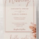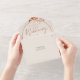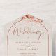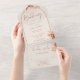 All in one wedding invitation featuring autumn fall rustic florals falling across a chic arch enclosing elegant terracotta typography. The invitation includes a perforated RSVP card that can be individually addressed or left blank for you to handwrite your guest's address details. Designed by Thisisnotme©