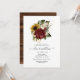 Rustic engagement party invitation featuring maroon and white roses and sunflowers with elegant handwriting typography.