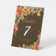 Rustic Autumn Fall Leaves Wedding Table Number Pedestal Sign