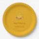 Lovely fall paper plates with HAPPY THANKSGIVING in script lettering. Decorated with a pumpkin and foliage. Add your name.