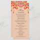 Celebrate your special day with the warmth and beauty of autumn with this personalised Fall in Love Wedding Menu Card. This elegant design features a rustic, botanical arrangement of warm orange, brown, and golden yellow leaves, intertwined with luscious ruby red berries. Set against a soft orange background, this card captures the essence of an autumn wedding, blending country charm with modern elegance. The menu is beautifully showcased in a combination of modern mocha typography and calligraphy script, adding a refined touch to your fall wedding celebration. Perfect for an autumn wedding, this menu card brings both rustic appeal and sophisticated grace to your table setting.