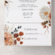 Introducing this exquisite All-in-One wedding invitation featuring a delicate floral design in the rich and warm hues of autumn. This beautifully crafted invitation is perfect for couples seeking a touch of elegance and romance for their fall wedding celebration. The All-in-One wedding invitations are both beautiful and practical by combining the wedding invitation with an easy to remove perforated RSVP postcard. They are also quick and easy to prepare for mailing. Simply address the invitation, fold the back flap and seal with the included clear stickers. Once your guests receive the pre-addressed invitation they simply tear off the perforated RSVP card and drop it in the mail.