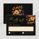 This elegant RSVP card features a rich black background adorned with a hand-painted watercolor bouquet in warm rust and orange tones, perfect for a fall or autumn wedding. Easily customise the wording to fit your celebration.