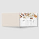 Rustic wedding guestbook featuring watercolor flowers and foliage in shades of ivory, cream, rust-orange, and brown. "The wedding of" is displayed in an elegant calligraphy script. Personalise the front of the fall wedding guest book with your names and wedding date. Add your married name and wedding date to the spine of the guest book. The boho floral guest book is perfect for fall weddings. Designed to coordinate with our Rustic Autumn Floral wedding collection.